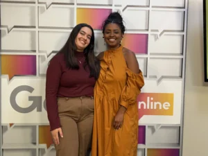 Beatriz Martins (a esquerda) posa com Janaina Souza