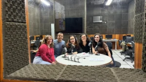 Prof. Me. Júlio César Fernandes posa com o grupo do podcast “Memórias que Resistem”.